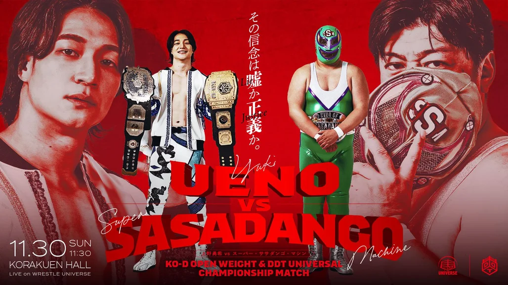 ■Match Lineup 〇Dark Match 15-Minute Single Match Akito & Daichi Satoh & Yuya Koroku vs Soma Takao & Rukiya & Hinata Kasai 〇Opening Match・Danshoku Dieno Comeback Match 30-Minute Single Match Danshoku Dieno & Antonio Honda & Kazuma Sumi vs Kazusada Higuchi & Toru Owashi & Kazuki Hirata ◯The 2nd Match・Special 3WAY Tag Team Match 30-Minute Single Match Yuki Iino & Yukio Naya vs Jun Masaoka & Gaia Hox vs Demuth & Ilusion ◯The 3rd Match・Special 8-man Tag Team Match 30-Minute Single Match Jun Akiyama & HARASHIMA & MBM & Ultima Sombra vs Chris Brookes & Naomi Yoshimura & Takeshi Masada & Yuki Ishida ◯The 4th Match・DDT Extreme Championship Match ~ Weapon Gamble ~ 60-Minute Single Match <Champion>To-y vs SanshiroTakagi<Challenger> *The 63th Champion's 5th defending match. *Using Takagi's pocket money as seed capital, each wrestler engages in public gambling beforehand to increase funds and purchase weapons. During the match, these weapons are randomly deployed at set intervals. Simultaneously, some form of gambling occurs in the ring, and only the victorious wrestler may use that weapon. If a wrestler who lost the gamble uses it, it constitutes a foul. *Decisions follow standard pro wrestling rules: 3-count, submission, KO, TKO, or ring-out. ◯The 5th Match・KO-D Tag Team Championship Match 60-Minute Single Match <Champion team>MAO & KANON with KIMIHIRO vs Daisuke Sasaki & Hideki Okatani<Challenger team> *The 88th Champion's first defense match. ◯Semi-Final・Special Single Match 30-Minute Single Match KONOSUKE TAKESHITA vs Shinya Aoki ◯Main Event・KO-D Openweight Championship & DDT UNIVERSAL Championship Double Title Match 60-Minute Single Match <Double Champion>Yuki Ueno vs Super Sasadango Machine<Challenger> *Ueno's The 88th KO-D Openweight Division Champion's 3rd,The 19th DDT UNIVERSAL Champion's first defending match. ◆ Live Commentary <Announcer> Haruo Murata, Satoshi Dairaku <Commentator> Kagehiro Kosano <Guest> Ami Tomite(Actor)