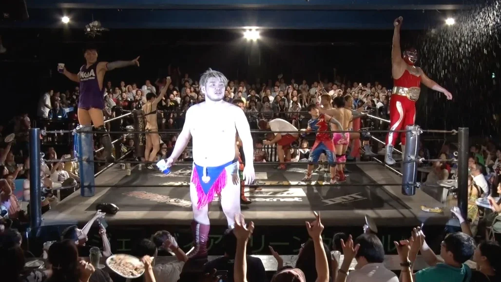 ■ Match Card 〇The 1st Match・A match to objectively and scientifically decide the group leader 30-Minute Single Match Makoto Oishi vs Shunma Katsumata vs MAO 〇The 2nd Match・Our Raripro vs. Hizapro 30-Minute Single Match <Raripro Army> Keisuke Ishii & Tanomsaku Toba vs. Tomomitsu Matsunaga& Daiki Shimomura <Hizapro Army> 〇Semi-Final・Someone Breaks Into The Match Every Few Minutes ~ Incomplete decision rule ~ 30-Minute Single Match Danshoku Dieno vs Mike Bailey 〇Main Event・Beer garden specialty Anywhere Fall 12WAY Match 30-Minute Single Match Super Sasadango Machine vs Antonio Honda Honda vs Mike Bailey vs Tanomsaku Toba vs Danshoku Dieno vs Keisuke Kazuki Hirata vs Makoto Oishi vs Shunma Katsumata vs MAO vs Daiki Shimomura vs Norikazu Fujioka
