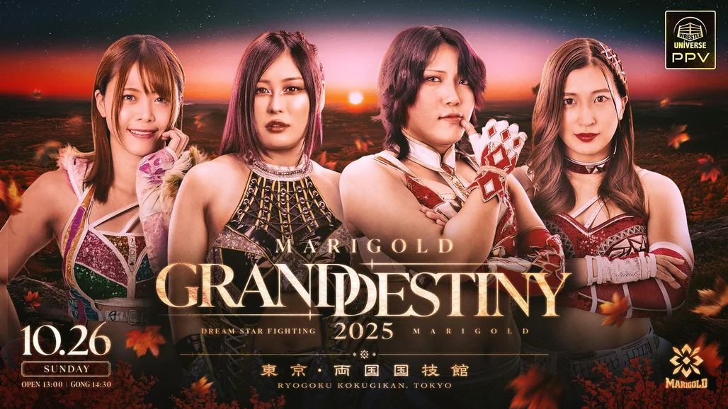 ■Match Lineup ◯The 1st Match・Second Generation Showdown 15-Minute Single Match Kizuna Tanaka (w/ Yumi Fukawa) vs Shinno (w/ Michiko Ohmukai) ◯The 2nd Match・Gauntlet Tag Match 20-Minute Match Participating Teams: Nao Ishikawa & Hummingbird vs Chanyota & Erina Yamanaka vs Minami Yuuki & Nagisa Tachibana vs Komomo Minami & Yuuka Yamazaki vs SHOKO Koshino (Debut Match) & TBD vs Nagisa Nozaki & Rea Seto *The team that remains undefeated will be declared the winner. Standard pro-wrestling rules apply, plus Over-The-Top-Rope elimination. Entry order will be determined by entrance music. ◯The 3rd Match・Single Match 15-Minute Single Match Megaton vs Major Star M ◯The 4th Match・Single Match 15-Minute Single Match Chika Goto vs Major Star S ◯The 5th Match・Twin Star Championship Match 30-Minute Single Match <Champion team>Riko Kawabata & Maria vs Misa Matsui & CHIAKI<Challenger team> *Magenta's, 2nd defending match. ◯The 6th Match・That's Wrestling 15-Minute Single Match Seri Yamaoka vs Chihiro Hashimoto (Sendai Girls Pro Wrestling) ◯The 7th Match・United National Championship Match 30-Minute Single Match <Champion>Mai Sakurai vs Yuzuki Victoria<Challenger> *Utami Hayashishita's 5th defending match. ◯Semi-Final・Marigold World Championship Match 30-Minute Single Match <Champion>Utami Hayashishita vs Miku Aono<Challenger> *Utami Hayashishita's 5th defending match. ◯Main Event・The Dream Destiny 30-Minute Single Match Mayu Iwatani vs IYO SKY (WWE)