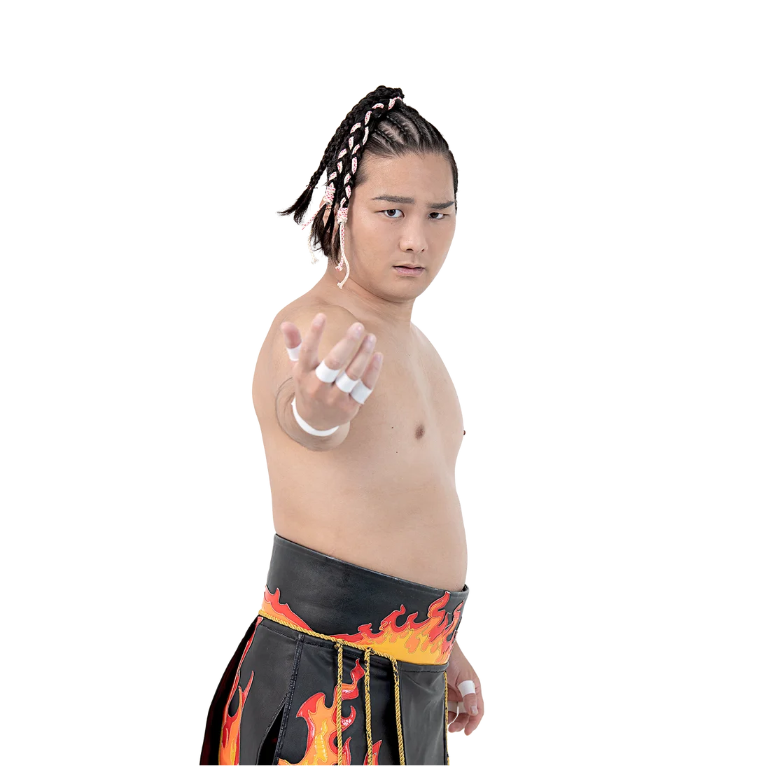 With a 15-year background in sumo wrestling, he was a member of the powerful Nippon University sumo team, and in high school, he won second place in the world in the lightweight division. In his debut match at Korakuen Hall on October 21, 2021, he surprised fans by using sumo thrusts and a spinebuster against fellow sumo-trained wrestler Kazusada Higuchi. In August 2022, after earning his first singles victory, he directly pleaded with Higuchi and Naomi Yoshimura to join Harimao. In May 2023, he also won the KO-D Six-Man Tag Team Championship. His catchphrase is "Dosukoi!"
