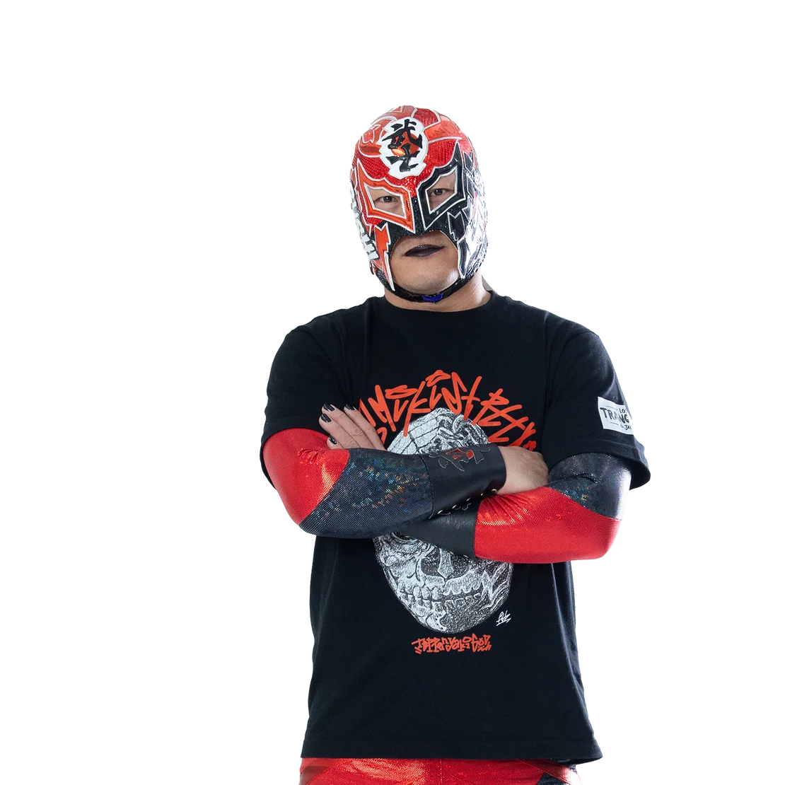He made his New Japan Pro-Wrestling debut on May 27, 2012, while on a developmental loan from All Japan Pro Wrestling. He specializes in agile Lucha Libre movements. He is also the industry's leading mask maker, entertaining fans by wearing a different mask for every entrance. He is the owner of the fried chicken specialty shop, "Tokyo Marutake Shoten."