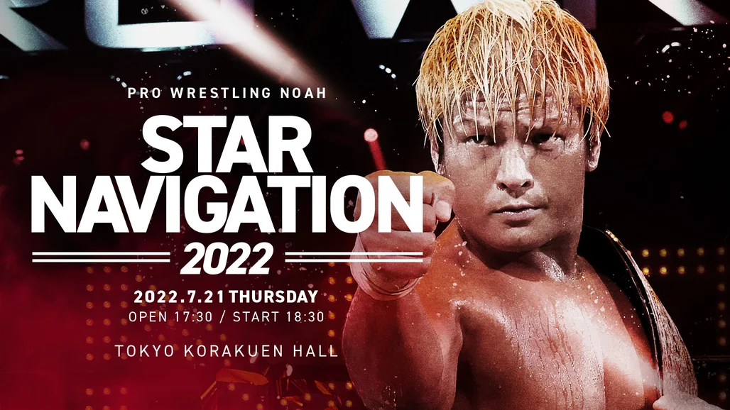 STAR NAVIGATION 2022 ■対戦カード 〇第1試合・シングルマッチ 谷口周平 VS 岡田欣也 〇第2試合・タッグマッチ ニンジャ・マック アレハンドロ VS ダンテ・レオン YO-HEY 〇第3試合・シングルマッチ 原田大輔 VS 吉岡世起 〇第4試合・6人タッグマッチ 拳王 中嶋勝彦 征矢学 VS モハメド ヨネ 稲葉大樹 稲村愛輝 〇第5試合・8人タッグマッチ HAYATA 小川良成 進祐哉 藤村加偉 VS 近藤修司 タダスケ 大原はじめ Hi69 〇第6試合・タッグマッチ 小島聡 小峠篤司 VS アンソニー・グリーン スタリオン・ロジャース 〇第7試合・オープン・ザ・トライアングルゲート選手権 OPEN THE TRIANGLEGATE (王者)NOSAWA論外 Eita 鈴木鼓太郎 VS YAMATO ドラゴン・キッド Kagetora(挑戦者) ※第81代王者の2度目の防衛戦となります。 〇第8試合 メインイベント・N1スクランブル 6人タッグマッチ 潮崎豪 田中将斗 マサ北宮 VS 杉浦貴 藤田和之 清宮海斗