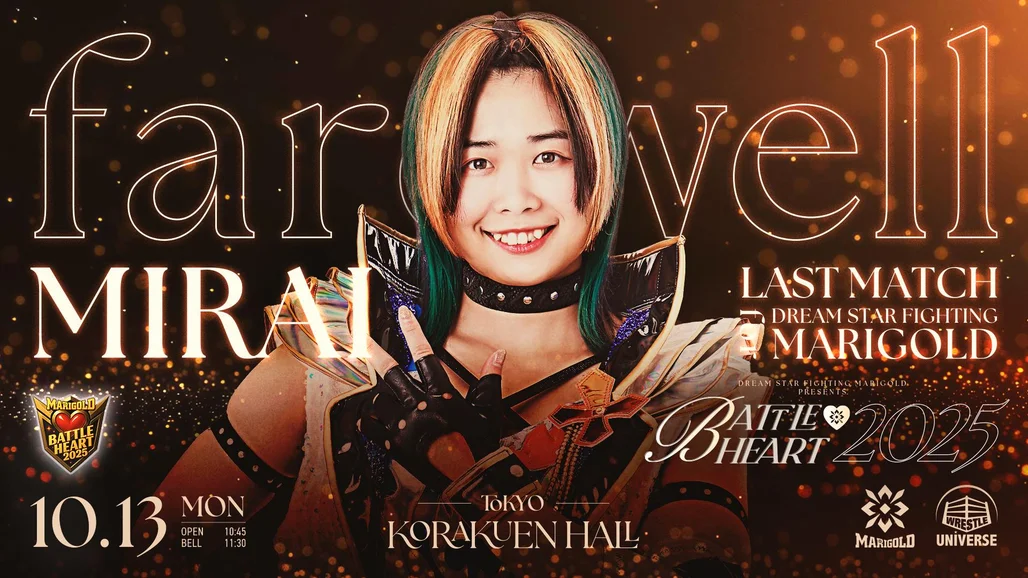 ■対戦カード 〇第1試合・3WAYマッチ 15分一本勝負 石川奈青 vs ハミングバード vs メガトン 〇第2試合・6人タッグマッチ 15分一本勝負 ビクトリア弓月 & 田中きずな & 橘渚 vs 山﨑裕花 & 南小桃 & 心希 〇第3試合・タッグマッチ 15分一本勝負 勇気みなみ & 後藤智香 vs 松井珠紗 & 瀬戸レア 〇第4試合・真紅のベルト前哨戦 20分一本勝負 林下詩美 & ちゃんよた vs 青野未来 & 山中絵里奈 〇セミファイナル・MIRAIラストマッチ 30分一本勝負 MIRAI & 桜井麻衣 vs 野崎渚 & CHIAKI 〇メインイベント・スーパーフライ級選手権試合 15分一本勝負 <王者>岩谷麻優 vs 山岡聖怜<挑戦者> ※岩谷麻優は3度目の防衛戦