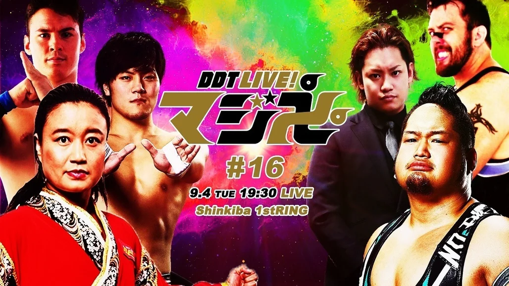 2018年9月4日 東京・新木場1stRING DDT「DDT LIVE! マジ卍 #16」を配信! ※権利上の都合により一部で消音する場合がございます。予めご了承ください。 ■対戦カード ○KO-D6人タッグ王座決定戦 KUDO&坂口征夫&高梨将弘 vs 高尾蒼馬&遠藤哲哉&マッド・ポーリー ○平田一喜DISASTER BOX加入査定試合 HARASHIMA&平田一喜 vs 大鷲透&上野勇希 ○里村明衣子&マイク・ベイリー&MAO vs 入江茂弘&ライアン・デイビッドソン&渡瀬瑞基 ○葛西純&樋口和貞 vs 佐々木大輔&島谷常寛 ○高木三四郎&伊橋剛太 vs 松永智充&中澤マイケル ○赤井沙希 vs 伊藤麻希 ※ほかNO TVマッチあり。