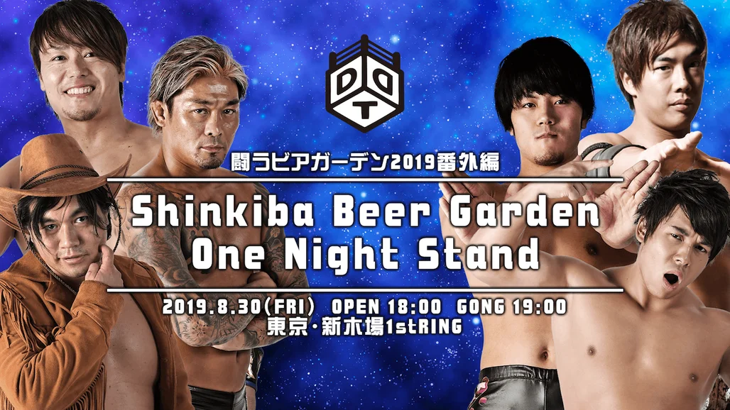 2019年8月30日 東京・新木場1stRING DDT「闘うビアガーデン 2019 番外編 ~Shinkiba Beer Garden One Night Stand~」を配信! ※権利上の都合により一部で消音する場合がございます。予めご了承ください。 ■対戦カード ○佐々木大輔&高尾蒼馬 vs 黒潮“イケメン”二郎&樋口和貞 ○ウソかホントかわからない怪談新沼袋デスマッチ <出場選手>男色ディーノ、大石真翔、大和ヒロシ、納谷幸男 ○目隠し3WAYマッチ マッド・ポーリー vs 高梨将弘 vs 平田一喜 ○スペシャルシングルマッチ ~ごんぎつね vs コブラ~ アントーニオ本多 vs サンティーノ・マレラ ○竹下幸之介&MAO&島谷常寛 vs HARASHIMA&坂口征夫&大家健 ○遠藤哲哉&プーマキング vs 大鷲透&上野勇希 ○彰人&勝俣瞬馬&朱崇花 vs 吉村直巳&赤井沙希&ジゼル・ショー